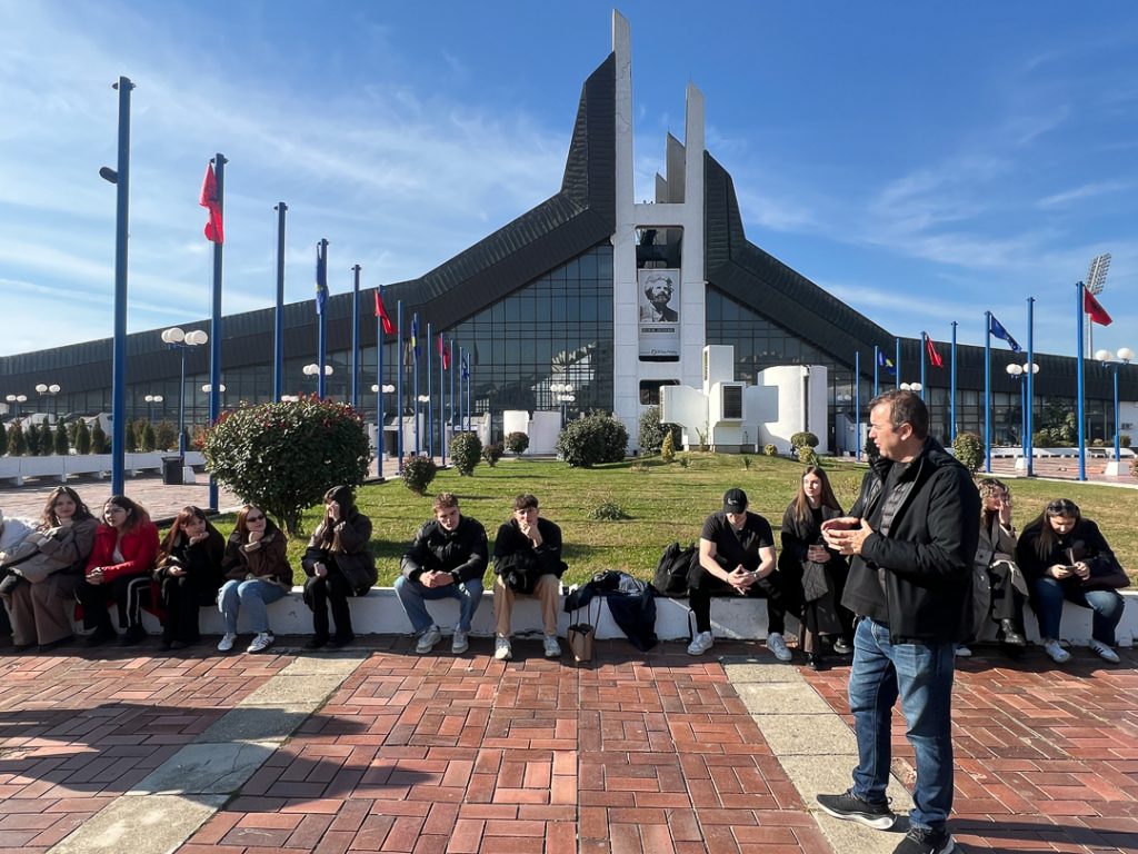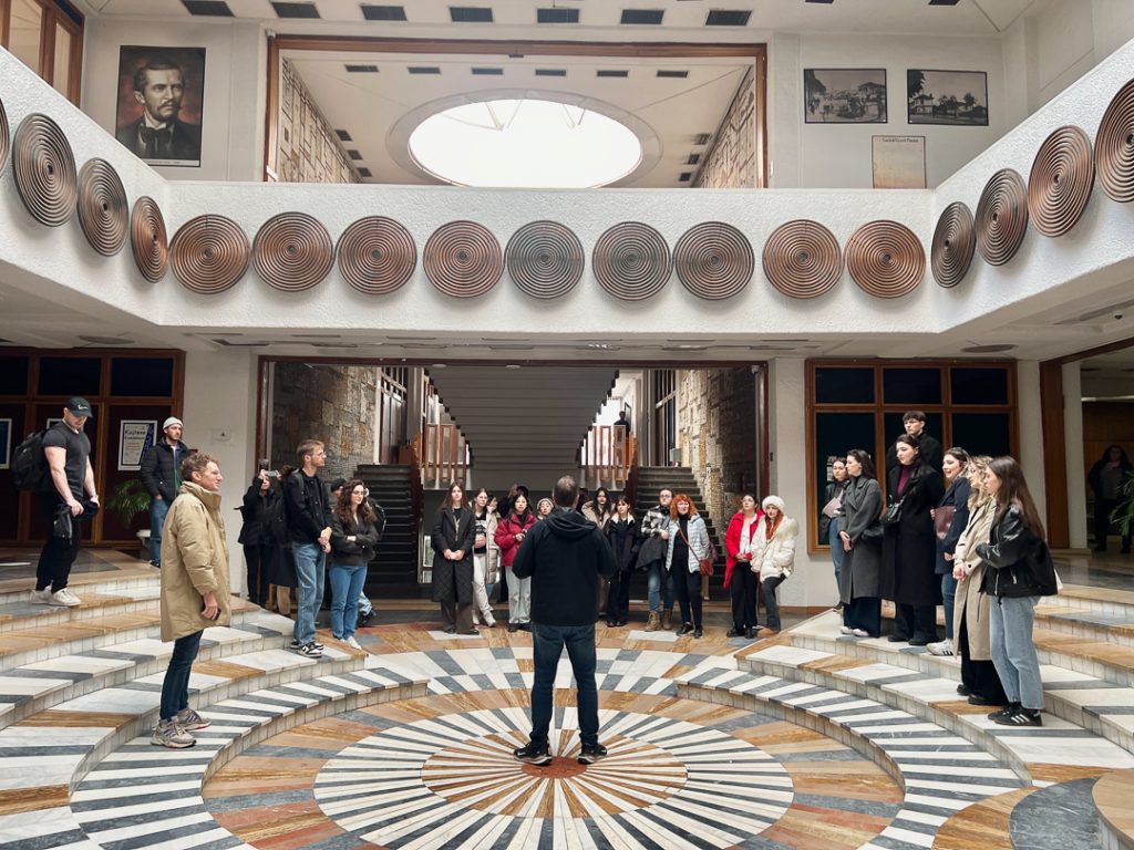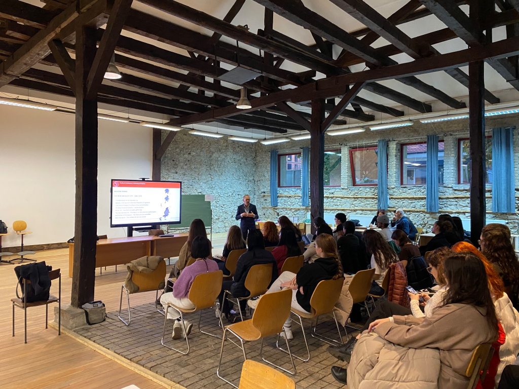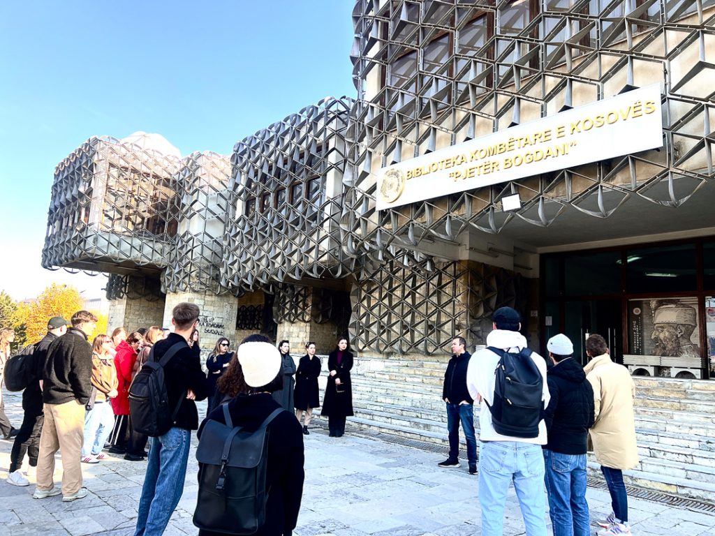 After the tour, the students had the opportunity to deepen their understanding of Prishtina’s urban development through a lecture by Dr. Techn Ilir Gjnolli. The presentation, titled “From Ottoman to Modern – The Transformation of Prishtina since 1945,” offered an in-depth look at the evolution of the city. Dr. Gjnolli’s talk, accompanied by an exhibition and a supporting book, brought the experiences of Prishtina’s citizens to life, showcasing the city’s journey from its Ottoman roots to its modern-day form.