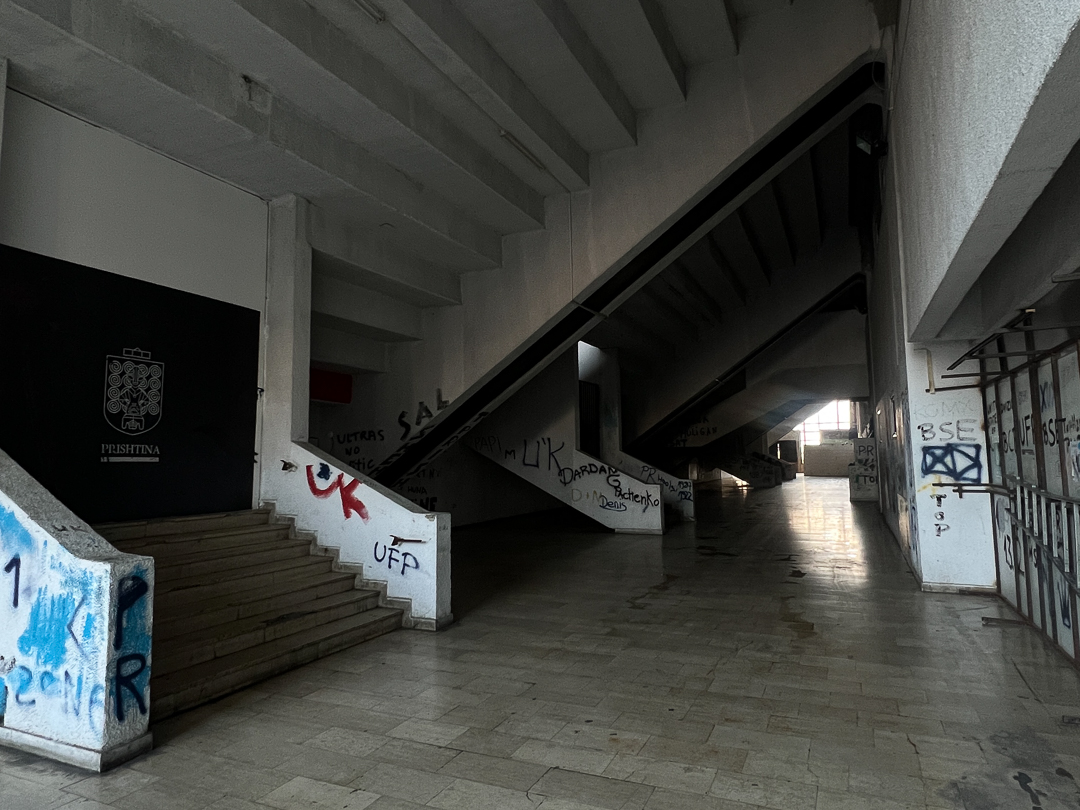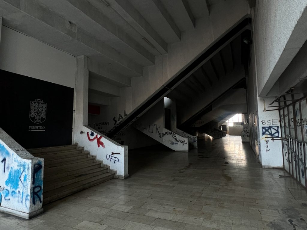 The Place of Youth and Sports  in Prishtina is a notable architectural project that tells a story not only of ambitious plans for the future but also of unfulfilled promises. Our guide, Bekim Ramku, took us through the building, offering insights into its history and the challenges faced by the complex.