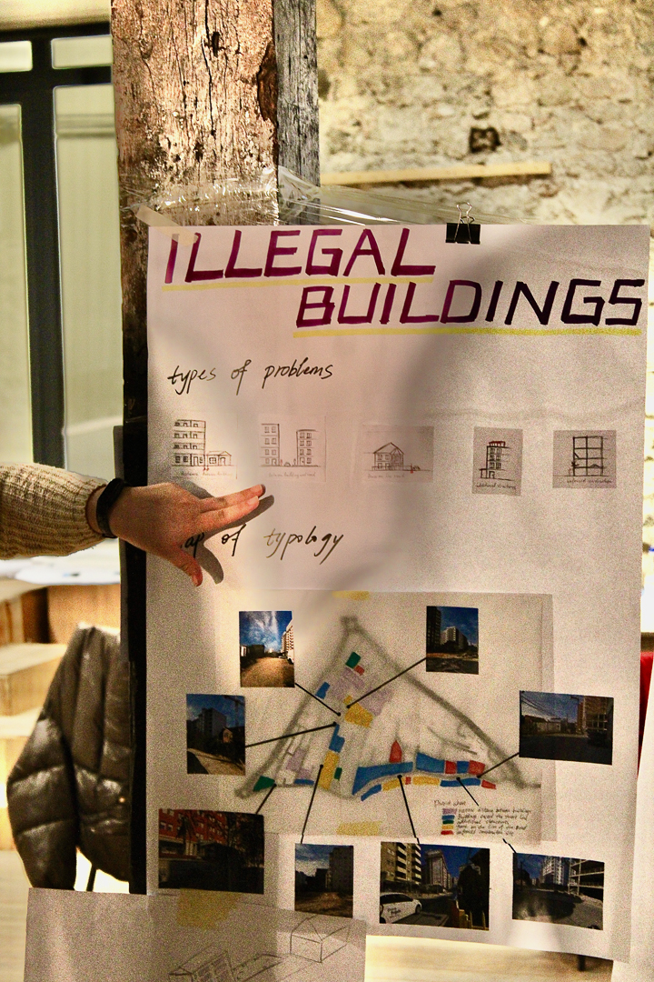 This group focused on the historical evolution of the area and the profound impact of recent urban planning decisions. Comparing Google Maps images from 2010 to the present, they identified a notable shift: large new structures along the main streets have altered the character of the district significantly. Conversations with residents and local experts revealed that between 2006 and 2014, the government launched initiatives to legalize previously unregulated buildings, which allowed for extensive modernization but also catalyzed an unprecedented building boom. One longtime resident explained that the construction of a new main road poses a particular challenge for the district, raising questions about long-term urban planning and the tension between old and new development. The group will continue to investigate the historical context and legal foundations of these changes as they assess the future direction of city planning in Matiçan.