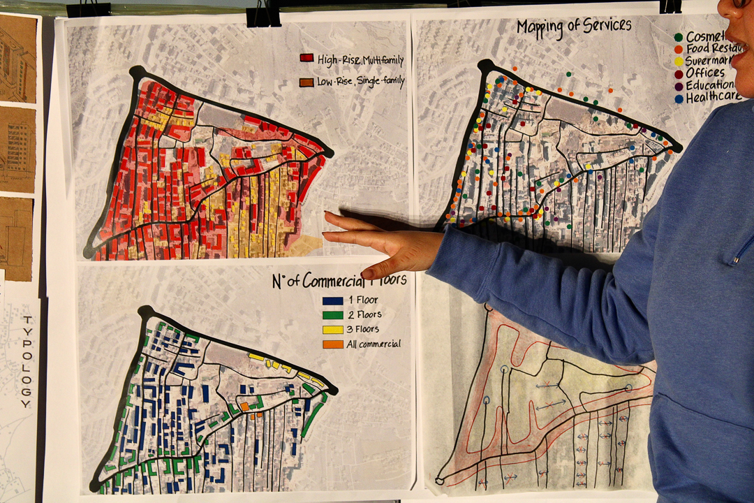 The "Housing" group examined urban development in the district and noted a strong contrast between small, older houses and new high-rise buildings, which are increasingly displacing open spaces and green areas. In conversations with residents, the impact of this rapid densification on daily life was clear. Many felt that the crowded structures impacted their privacy significantly, with several residents explaining they keep their balconies closed to avoid constant visibility from neighboring buildings. The towering high-rises also obstruct natural light, leaving numerous apartments in shadow throughout the day. One longtime resident explained how the absence of trees and green spaces has reduced the area’s livability, creating a sense of claustrophobia among neighbors. The group aims to continue their analysis of available open space to better understand the relationship between urban density and quality of life in the district.