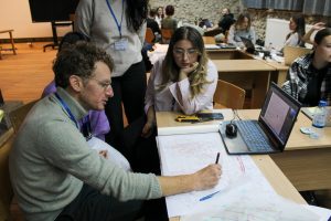 The groups utilized analog methods such as sketches, mappings, and collages, which proved invaluable in supporting the creative process. These techniques allowed for rapid and vivid visualization of ideas, sparking dynamic discussions and fostering a vibrant flow of creativity. As a result, not only were the final outcomes advanced effectively, but the collaborative dynamic within the teams was also significantly strengthened.